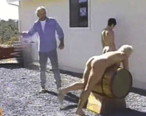 After skipping their chores to go to the mall, three adult women (18+) are marched behind the shed and given a blunt choice: take their punishment or leave. All three choose punishment. Ed Lee has each woman select her own implement when he asks—strap, cane, or whip—then positions them over the outdoor barrel for measured, countable strokes. The session moves to bare so technique, color, and reactions are unmistakable. Sunlit, tape-era visuals and steady camera angles keep it raw and honest: calm scolding, clear commands, and no filler—just classic Nu-West/Leda discipline carried out to completion.